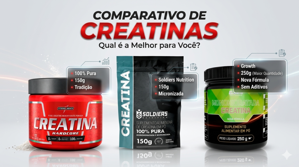 A análise do custo-benefício e da eficácia das creatinas disponíveis no mercado é essencial para orientar os consumidores na escolha do produto mais adequado a suas necessidades. Neste contexto, comparamos as três marcas destacadas: Growth Supplements, Soldiers Nutrition e Integralmédica.